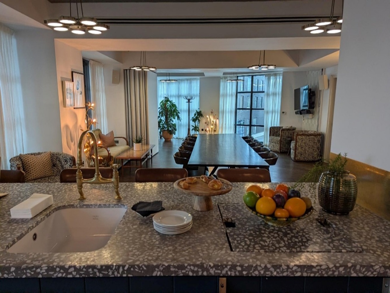 The meeting spaces are quirky. There is a pantry with open plan kitchen, where clients help themselves to drinks and snacks.